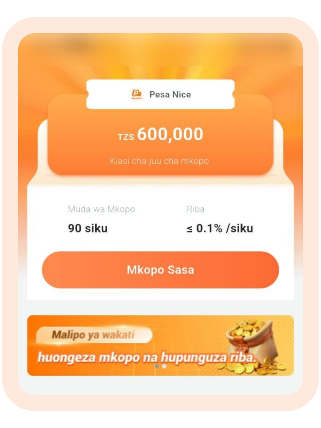 Katika Tanzania, kuna changamoto na fursa. Timu ya Pesa Nice imeshika mioyo ya wananchi wa Tanzania, ikielewa kuwa mahitaji ya kifedha ni muhimu kwa biashara, familia, au malengo ya elimu, kwa hivyo tunatoa huduma ya mkopo yenye usalama, ufanisi na rahisi.